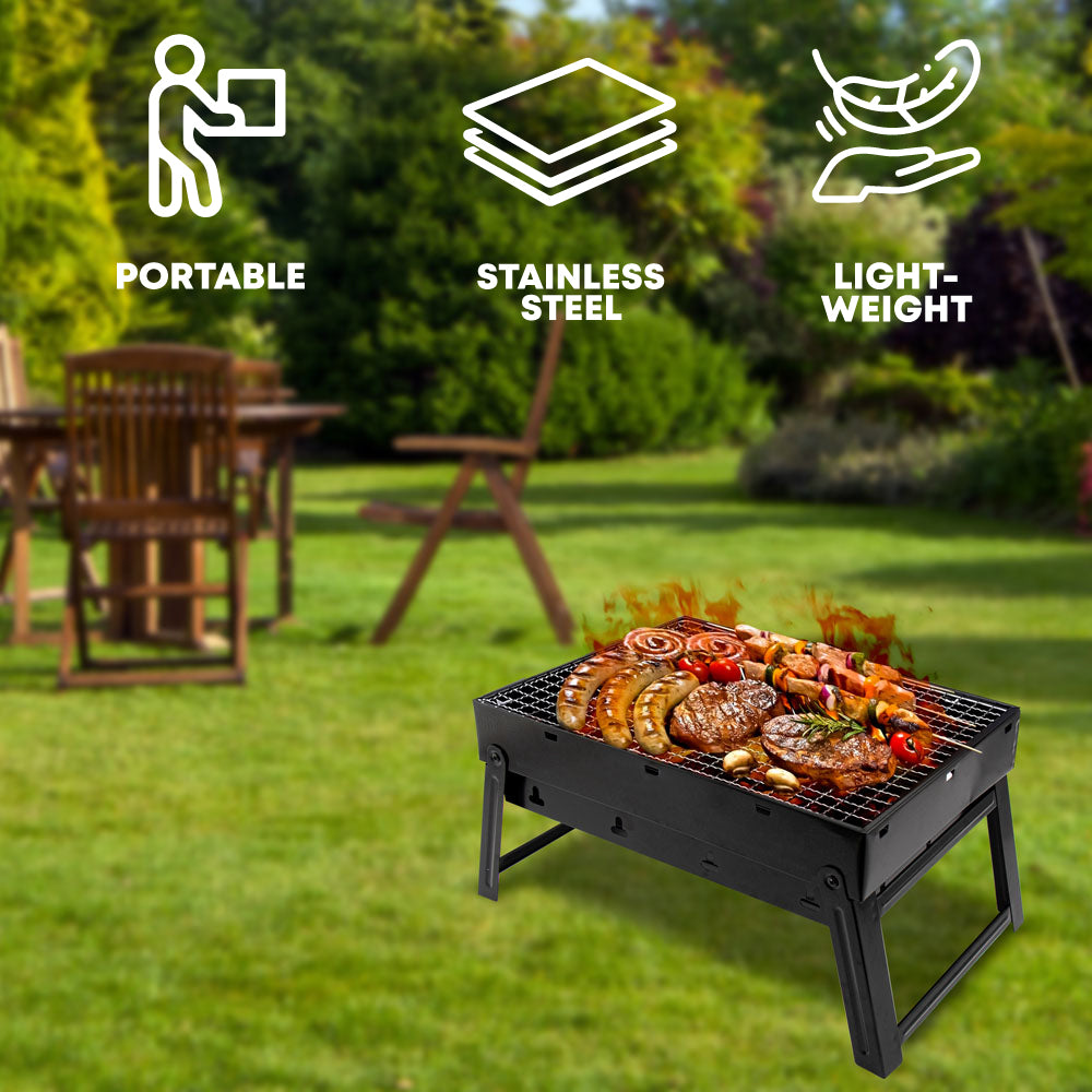 MATERIALS: Made from high-quality, heat-resistant materials, this grill is built to withstand high temperatures and regular use, ensuring long-lasting durability. The grill is equipped with sturdy, foldable legs that provide stability during cooking and make it easy to transport and store when not in use.