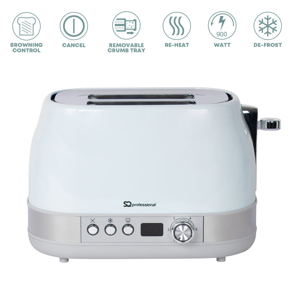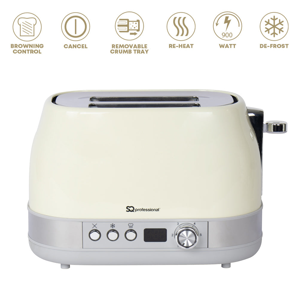 The Epoque Breakfast Set combines classic design with modern functionality, offering a beautiful balance of form and convenience for your kitchen. The toaster features a digital timer and two spacious toasting slots, providing versatile options for your breakfast. The perfect crispness of every slice is ensured with the six browning levels, while the Defrost, Reheat, and Cancel functions give you full control. Its removable crumb tray and anti-slip feet make for easy maintenance and safety, and the convenient cord storage keeps your countertop tidy.