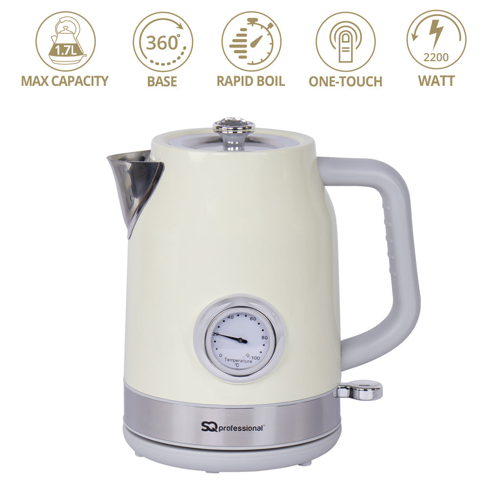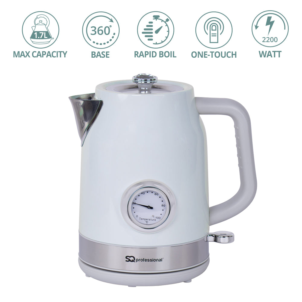 The matching kettle boasts a generous 1.7L capacity and a cordless design, allowing for easy movement and pouring. Its rapid-boil function is perfect for busy mornings, while the large spout with a built-in filter ensures a smooth pour every time. The water temperature gauge adds an extra layer of precision, and with a concealed heating element and 360-degree rotation base, this kettle is practical and stylish. Whether it’s a quick cup of tea or a family breakfast, the Epoque Breakfast Set delivers performance and elegance in equal measure.