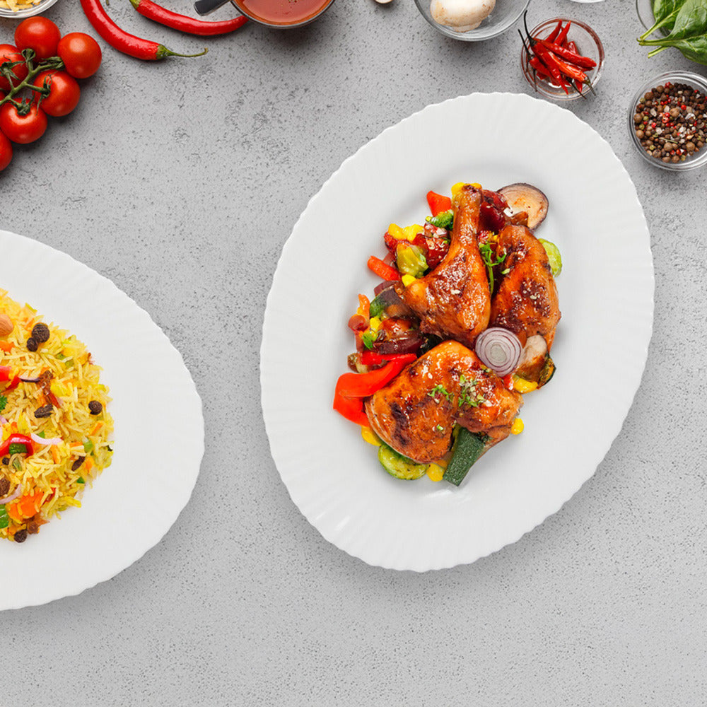 Available in three versatile sizes, these opal glass serving plates add elegance to family dinners, gatherings, buffets, and celebrations—perfect for anyone who values quality dinnerware with visual charm.