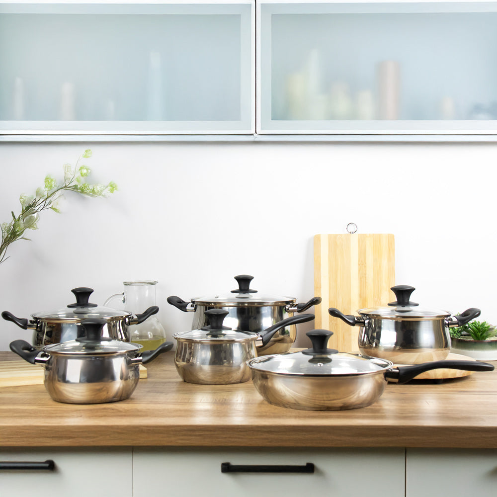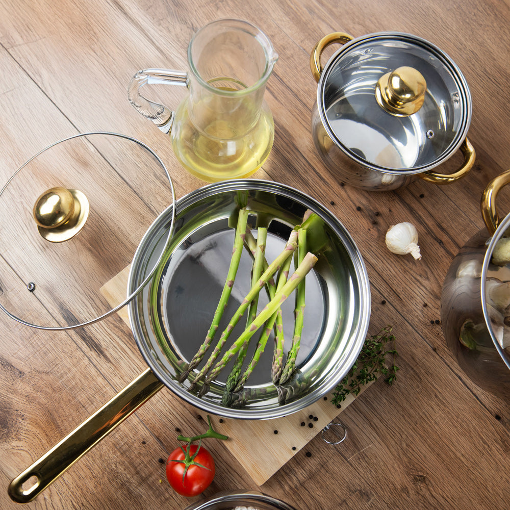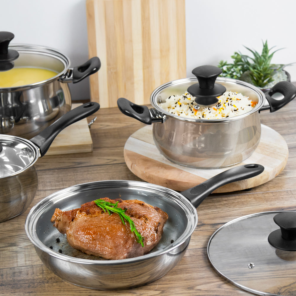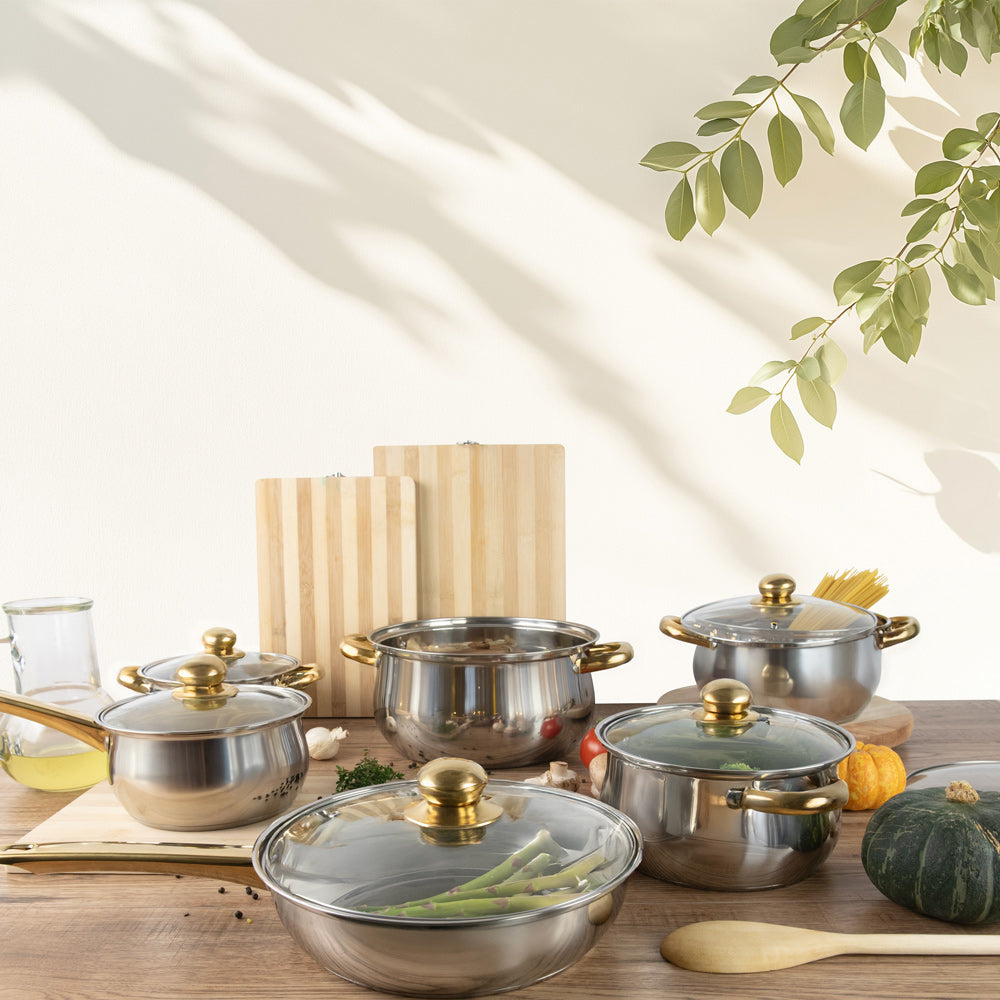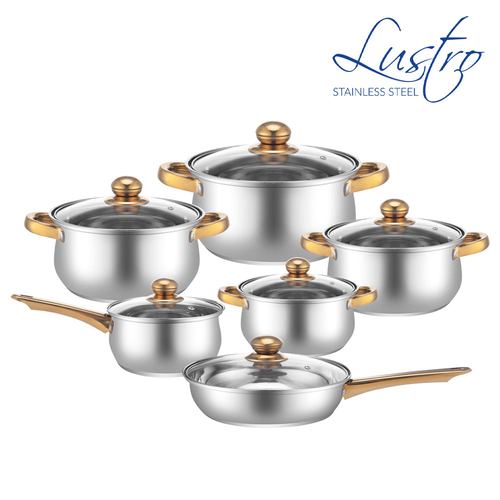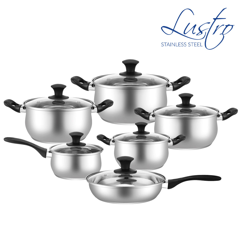 Indulge in the luxury of Lustro Stainless Steel Cookware. Crafted with precision, this set offers both style and substance. Its dishwasher-safe design ensures effortless upkeep, while its versatile cooking capabilities make it perfect for any culinary endeavor.