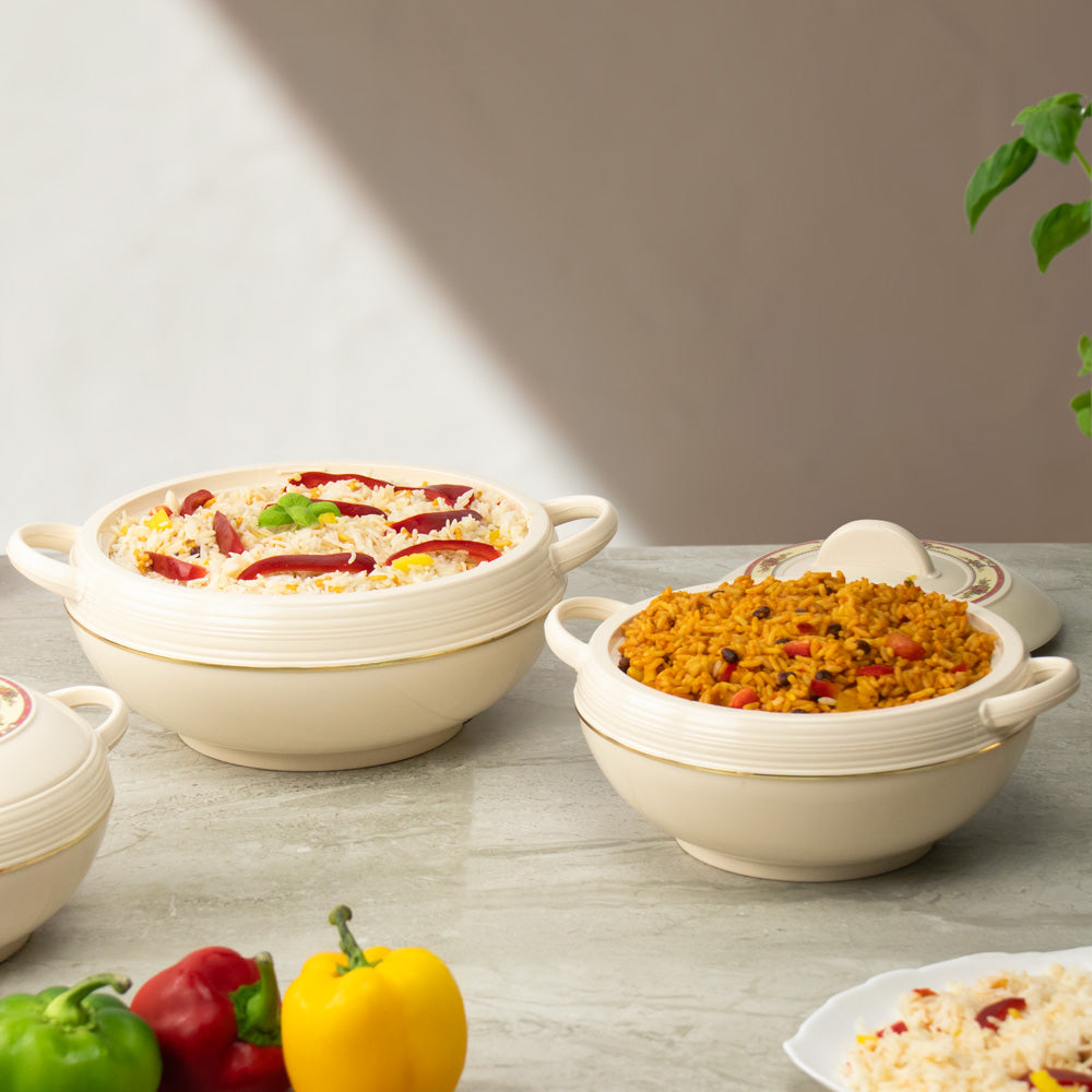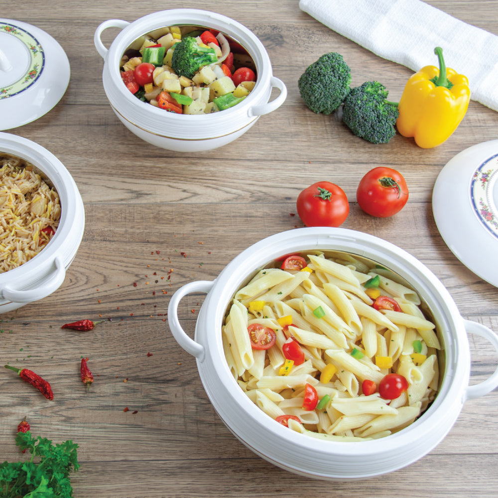 Make sure your dinner party goes smoothly with the SQ Professional Ambiente Insulated Casserole 3pc Set. Having the right serving dishes takes the stress out of hosting and this elegantly designed insulated hot pot casserole set combines style with function to ensure all your special occasions are a success.