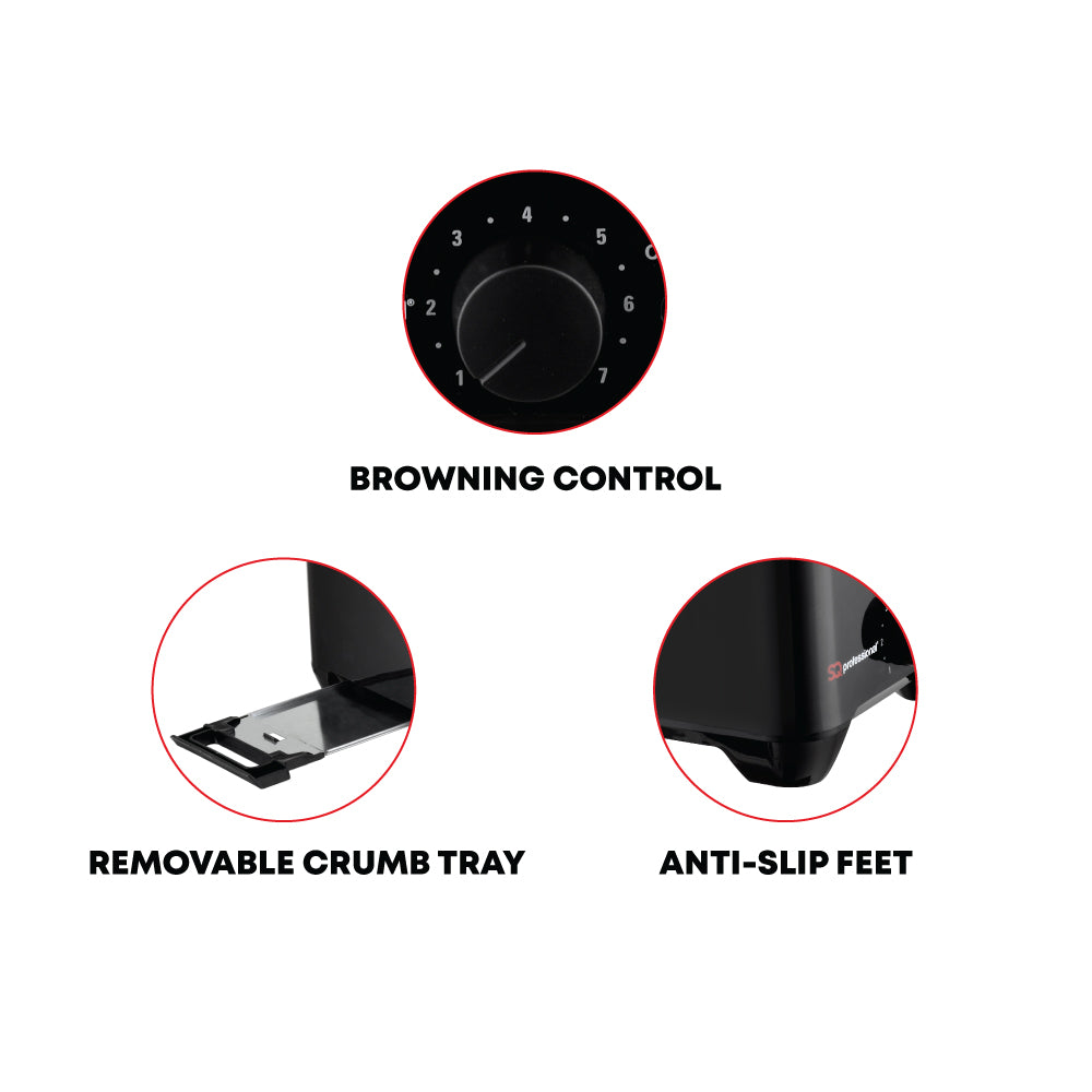 The SQ Professional 2-slot Toaster from the Blitz range is designed for simplicity and practicality. Toasting has never been easier. Catering for all tastes in toast, the 7-level browning control feature will deliver your breakfast exactly as you like it - whether golden brown or very well done.