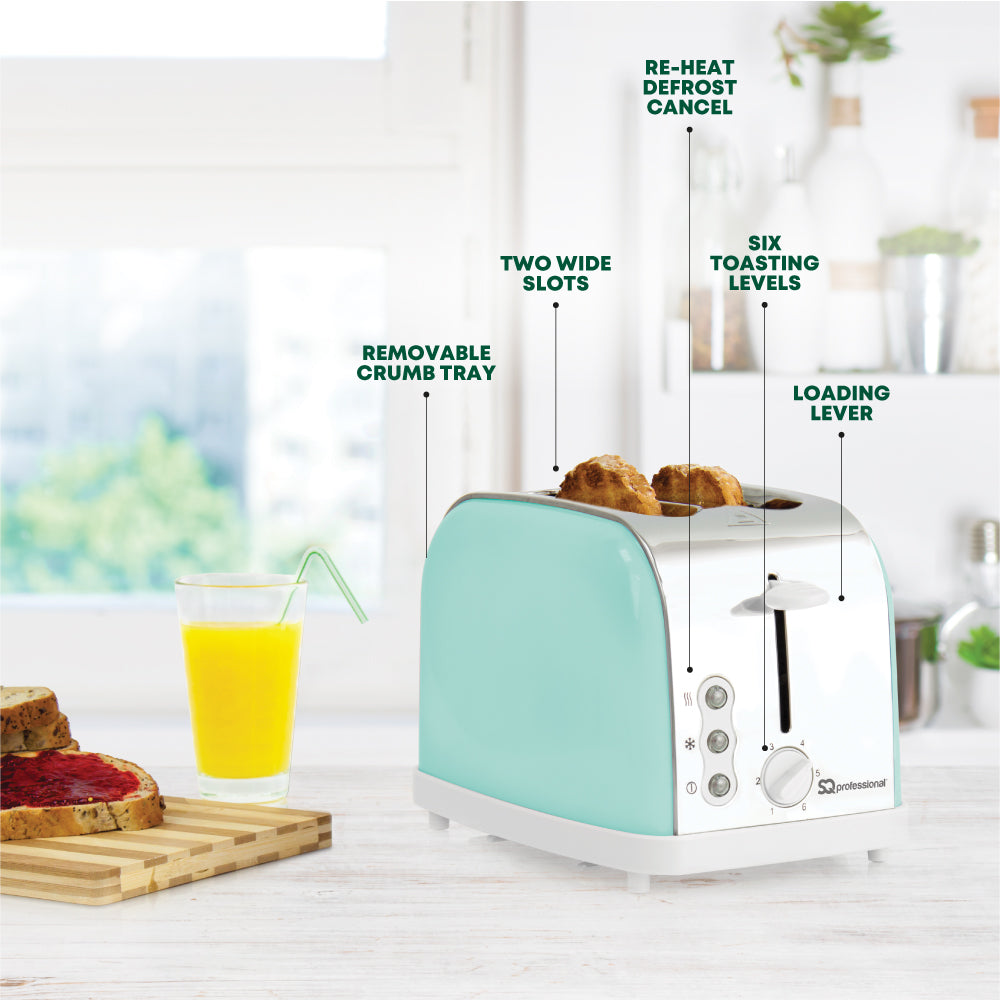 COMPLETE YOUR KITCHEN:The two-slice Dainty Legacy toaster is best engineered for everyday use. Pretty and practical, what’s not to love? This pastel-coloured toaster provides a pop of colour that will brighten up any kitchen.