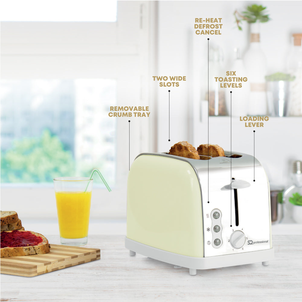 FUNCTIONALLY TASTEFUL:This iconic electric toaster brings a note of elegance and taste to any kitchen. The 2-slice electric toaster boasts an efficient defrost function to toast from frozen, a Reheat button to warm your unbuttered toast and a high lift lever.