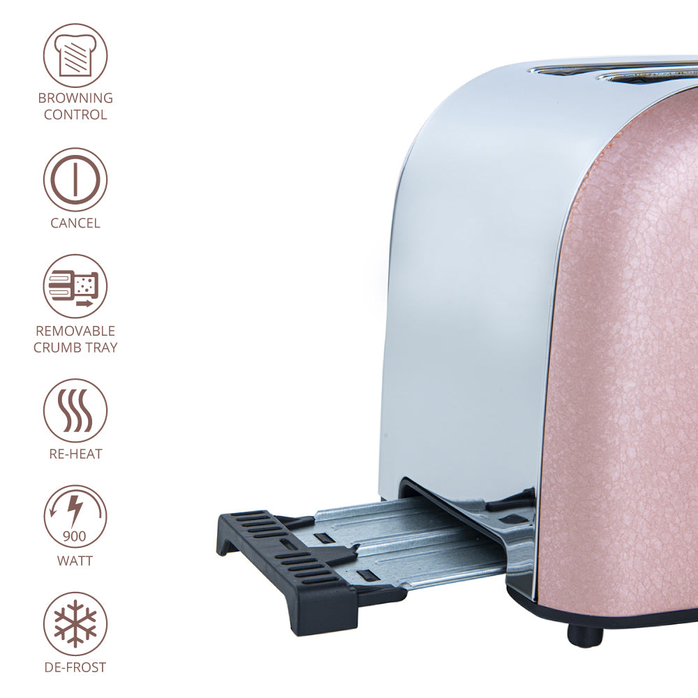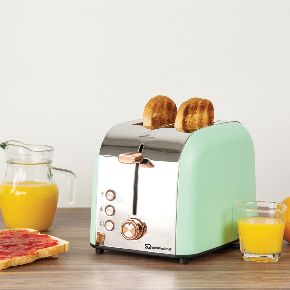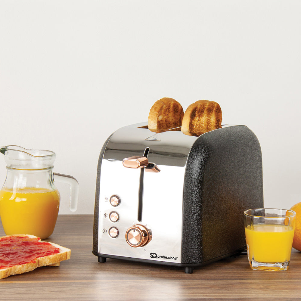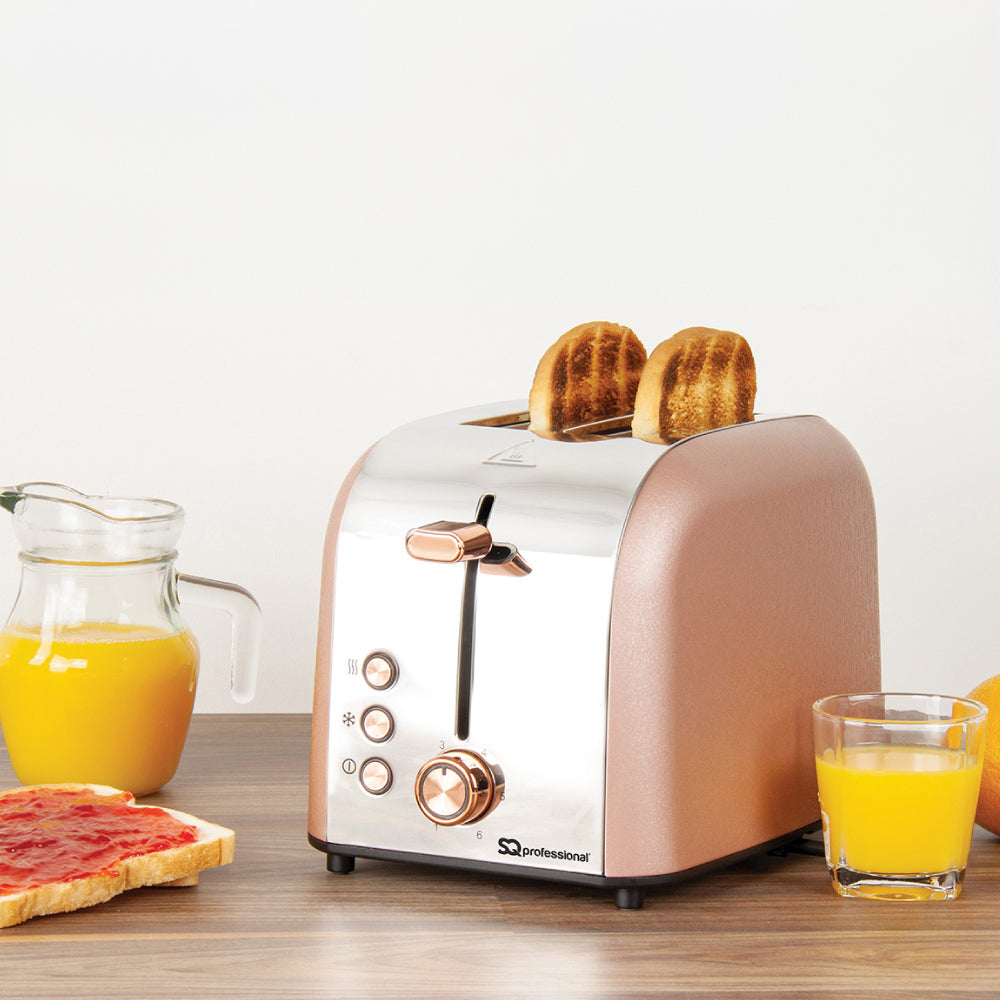 The SQ Professional Epoque Stainless Steel 2-slice Toaster comes in soft colour shades, with rose gold buttons and a plunger to bring a sophisticated look to your kitchen. Catering for all tastes in toast, the variable browning control feature on this stainless steel toaster will cook to perfection whether you prefer your toast golden brown or very well done.