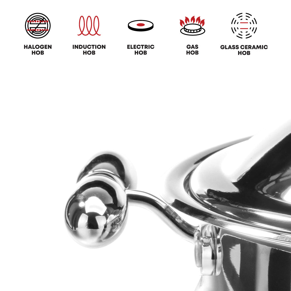 HOB SUITABILITY: Suitable for most hob types including gas, electric, ceramic, halogen, and induction.