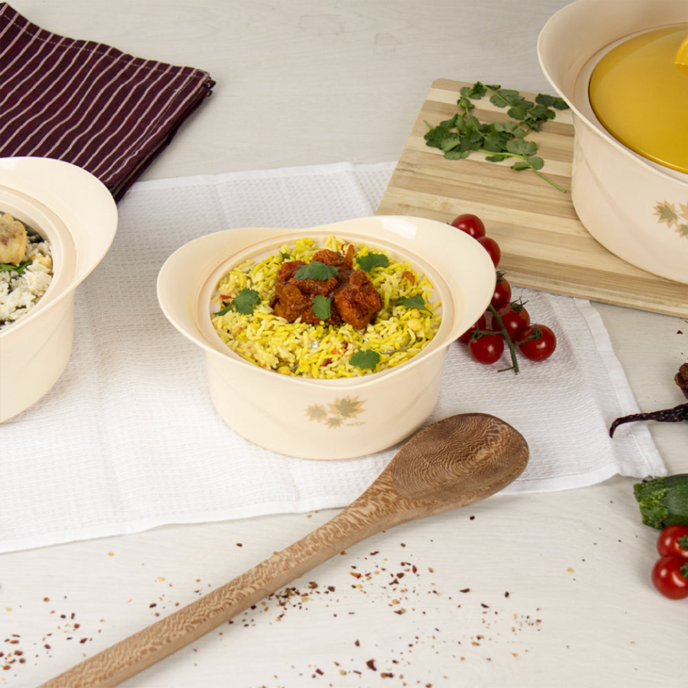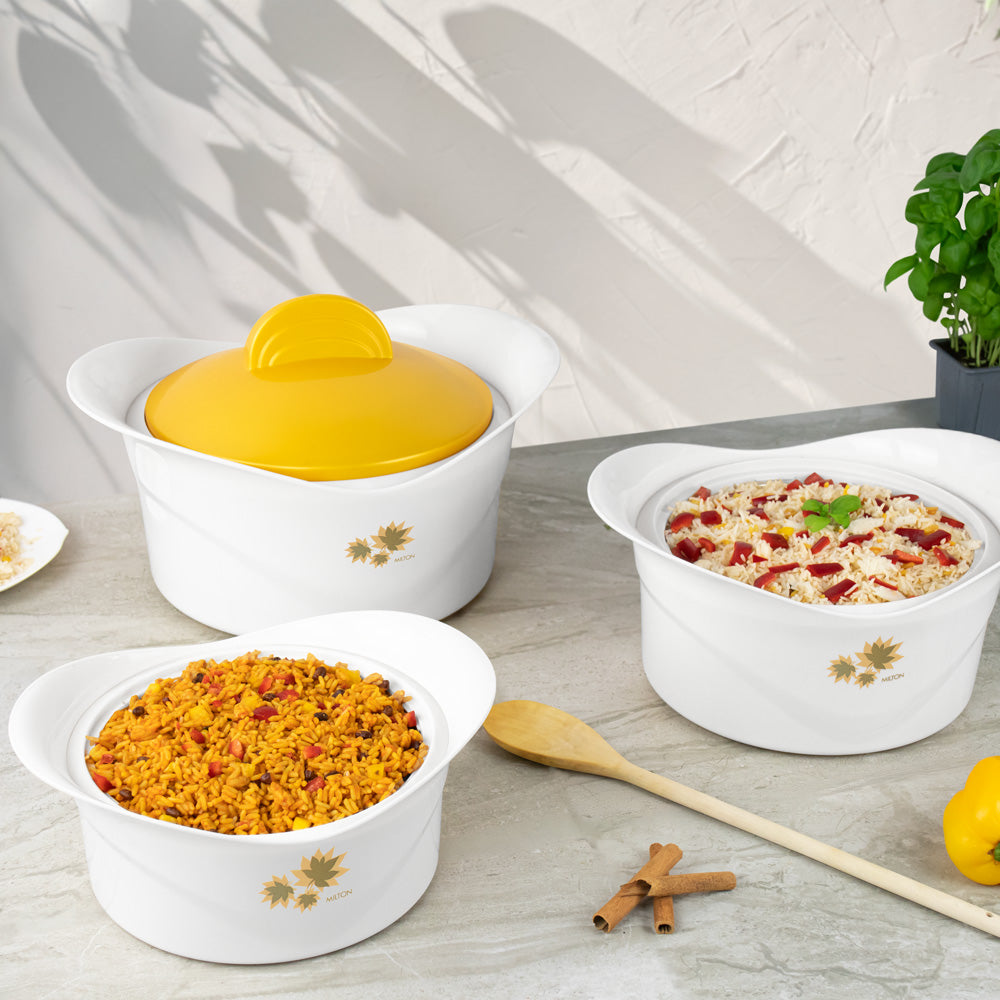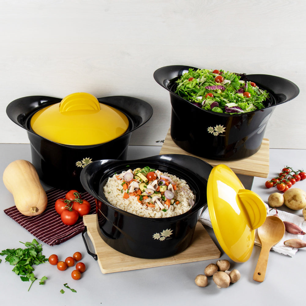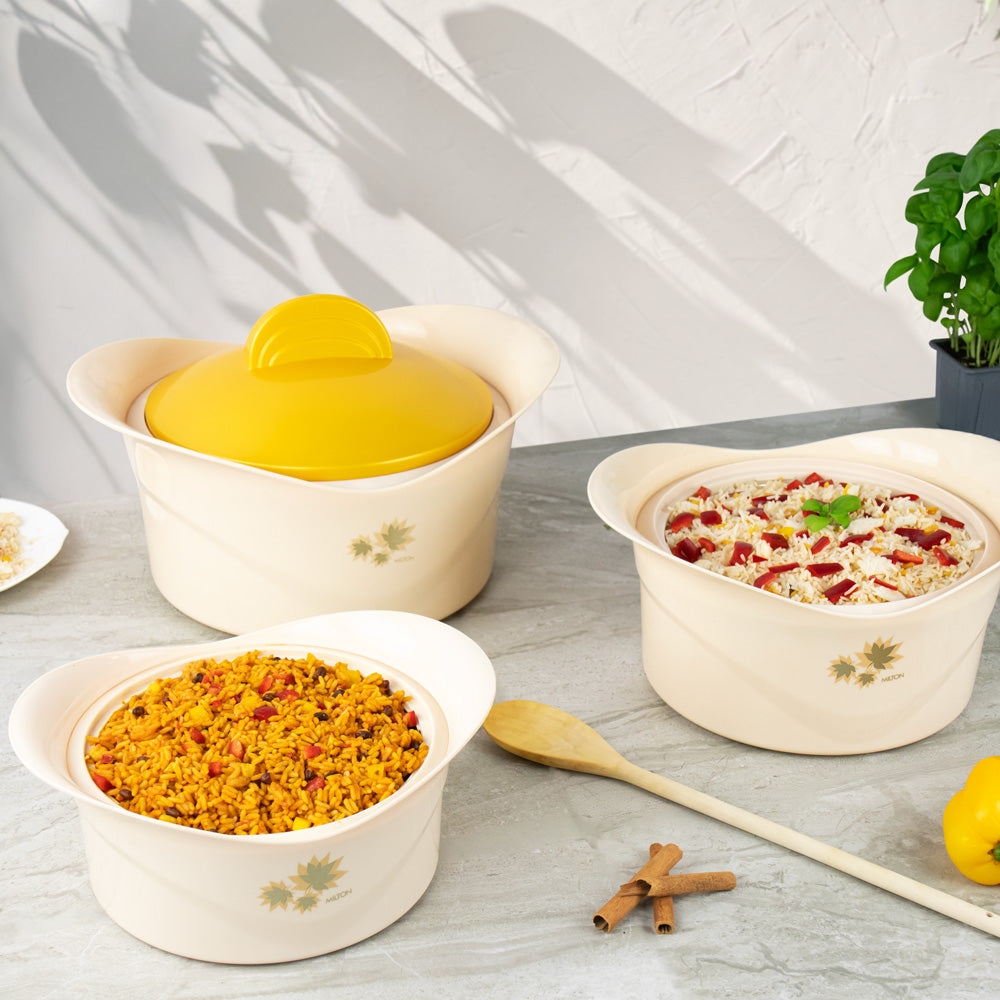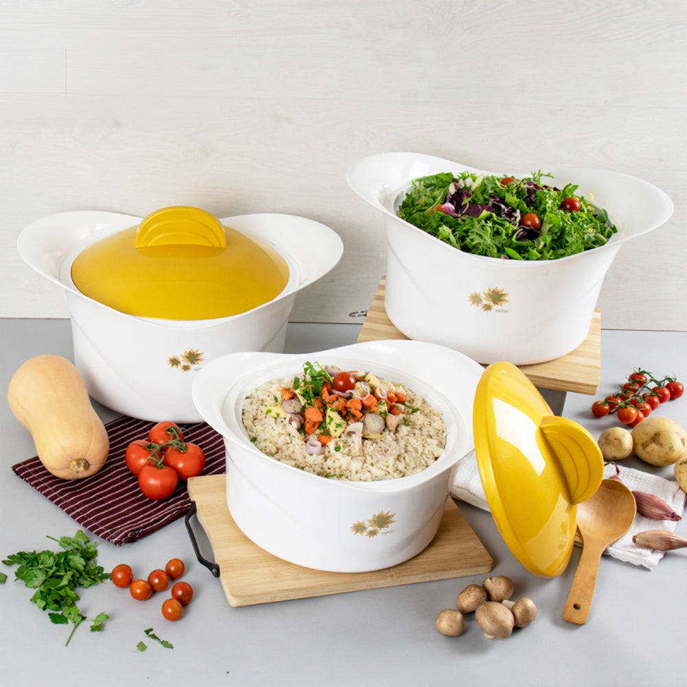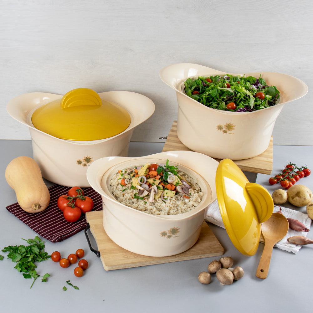 DESIGN: This stylish yet practical insulated hot pot casserole set has been elegantly designed to create the perfect serving dish. Decorated with an attractive motif and topped with an eye-catching lid, they are the ideal accessory for the dining table.