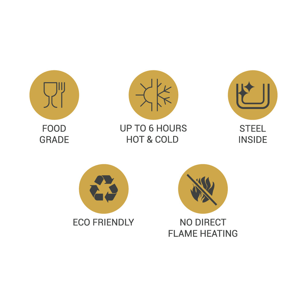 MATERIALS: Forged from high-quality, 100% food-grade materials, each insulated food warmer pot combines a superior stainless steel liner and special PU insulation outer coating to retain heat for up to six hours. The superior material used is both hygienic and odourless, preserving the quality and flavour of your food. Integrated side handles provide comfort and grip.